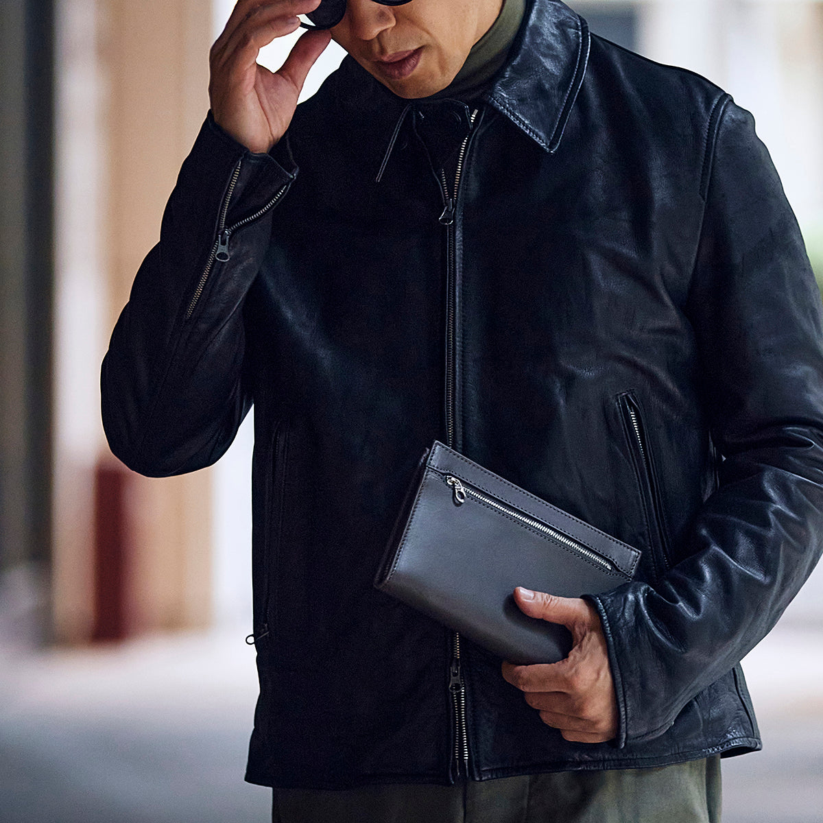 黒一択で仕上げたシンプルなデザインと、上質なリアリティレザーならではの柔らかな質感。